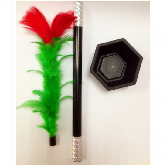 Siyah ve Beyaz şeritli sopa,yeşil ve kırmızı tüy çiçek küçük çocuklar için çok hassas tasarımı ve çekici sihirli bir üründür.